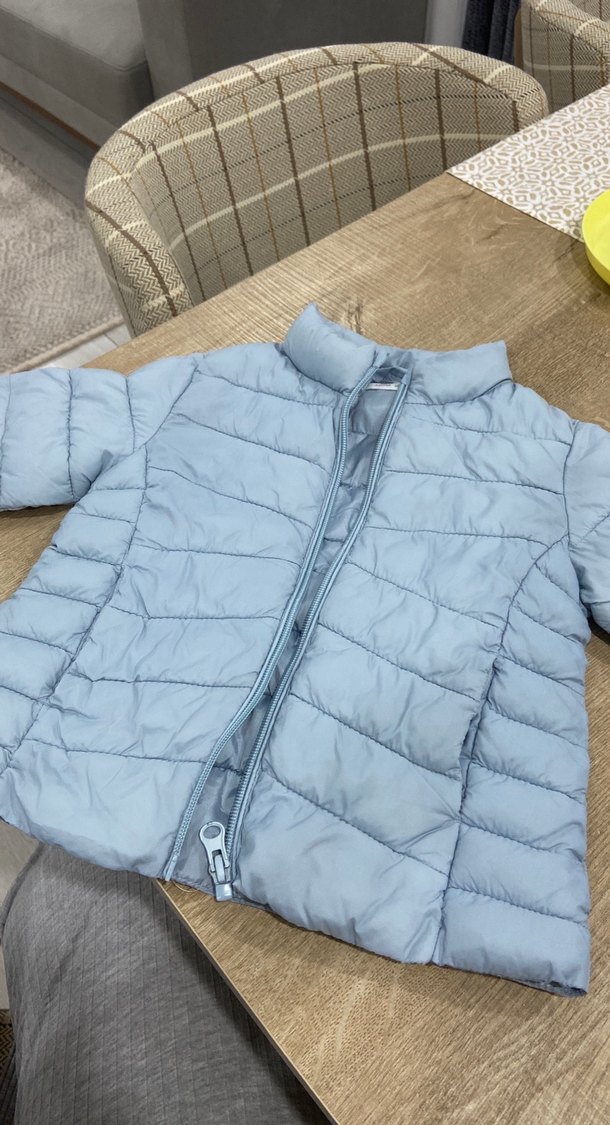 Açık mavi , kısa kesim ve dar kesim bebek kışlık mont. Yumuşak sentetik kumaştan, fermuarlı ve sade desensiz tasarıma sahip, günlük kullanıma uygun. ❄️