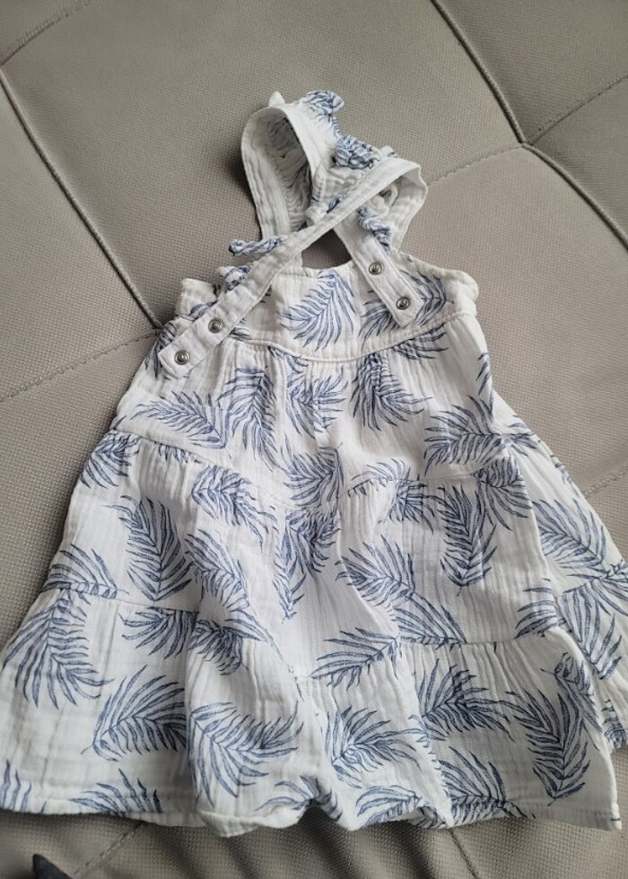 9ay -1.5 yas arasi icin uygun sirt kismi lastikli askilari capraz veya duz citcitlaniyor ,lekesi kusuru yok cok az giyildi ,ebebekten aldik markayi hatirlamiyorum #bebekelbise #muslinelbise
