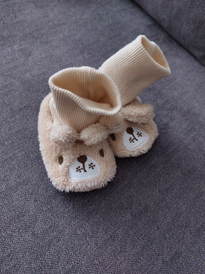 Bej renkli, nakışlı ayıcık detaylı, yumuşak ve sıcak kumaştan örme çocuk ev botu çok kullanılmadı 21 numara