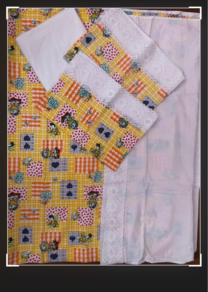 Üründe yırtık sökük yoktur sadece iç kısmında son fotoda göründüğü gibi belli belirsiz hafif leke var. 2yastık kıfılı 1çarşaf ve 1nevresim var.