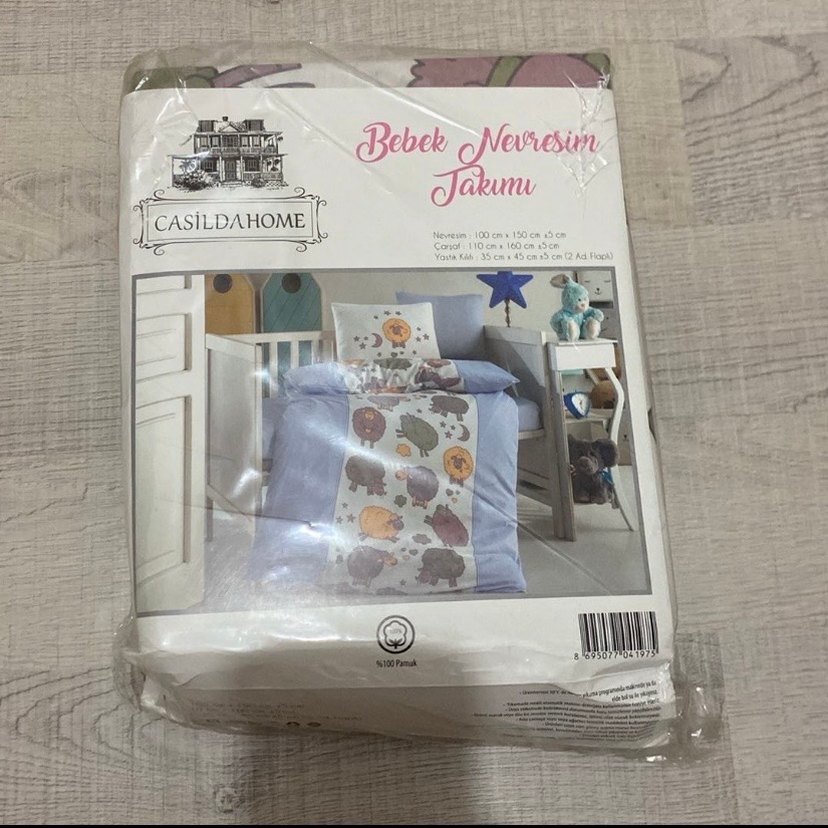Pastel camel tonlarda, baskılı pamuklu kumaştan bebek nevresim takımı. Nevresim, çarşaf ve yastık kılıfı içerir, konfor ve şıklık sunar. ️