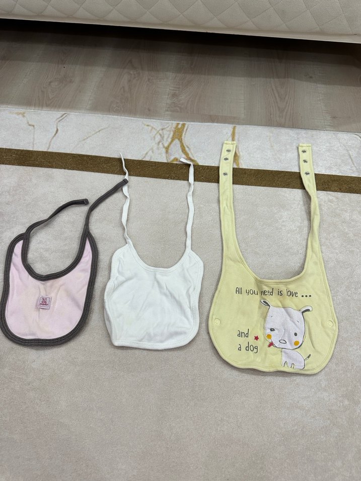 Pastel renklerde, beyaz ve sarı tonlarında 3'lü bebek önlüğü seti. Üzerinde köpek ve "All you need is love... and a dog" yazısı bulunan baskılı modeller. Yumuşak kumaşlıdır. 3 adet gönderilecektir (3.ç) #bebek #giyim #zıbın #kıyafet