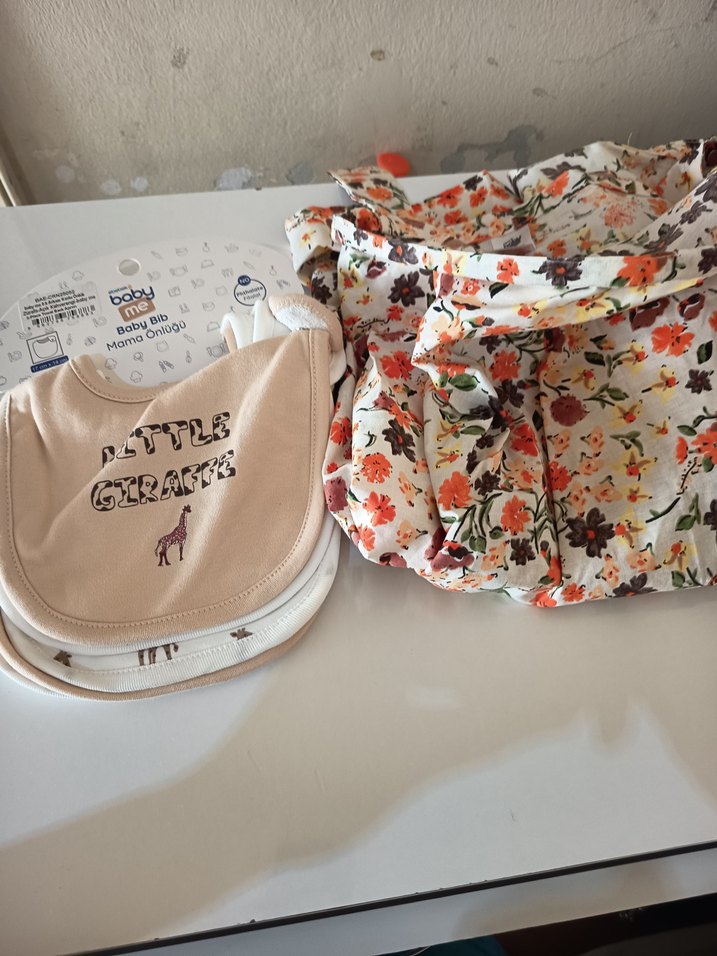 Bebek Önlüğü Seti, Pastel Kahverengi Baskılı