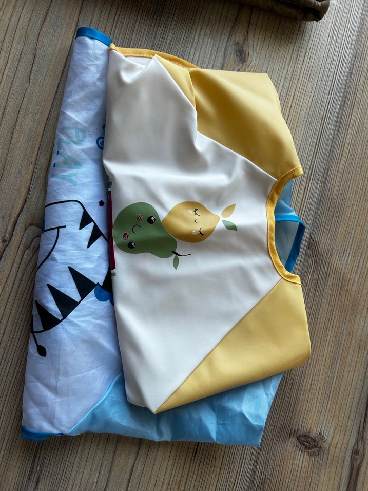 Uzun kollu, sarı renkte, meyve desenli silikon bebek önlüğü. Önde döküntüleri yakalamak için cepli ve kolay temizlenebilir malzemeden yapılmıştır. Diğeride hışır kumaş kolay yıkanır ve silinebilir bebek önlüğü ikili fiyatıdır tekli alım için yazınız.