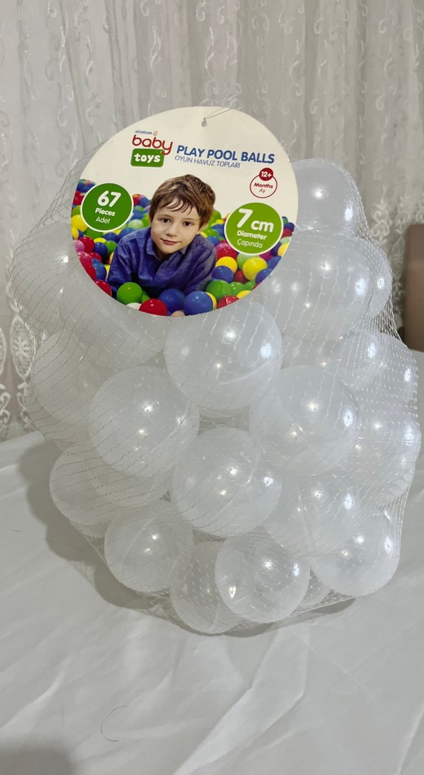 67 parçadan oluşan renkli bebek oyun havuzu topları, her biri 7 cm çapındadır. Oyun alanları ve havuzlar için uygundur.