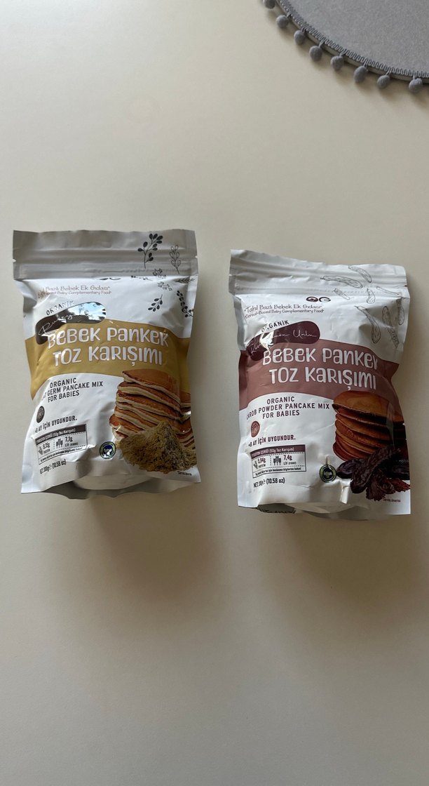 Bebekler için organik toz pancake karışımı, iki çeşitte sunulur. Doğal malzemelerle kolay hazırlanır. OG markası na ait skt si 07.2026 dir