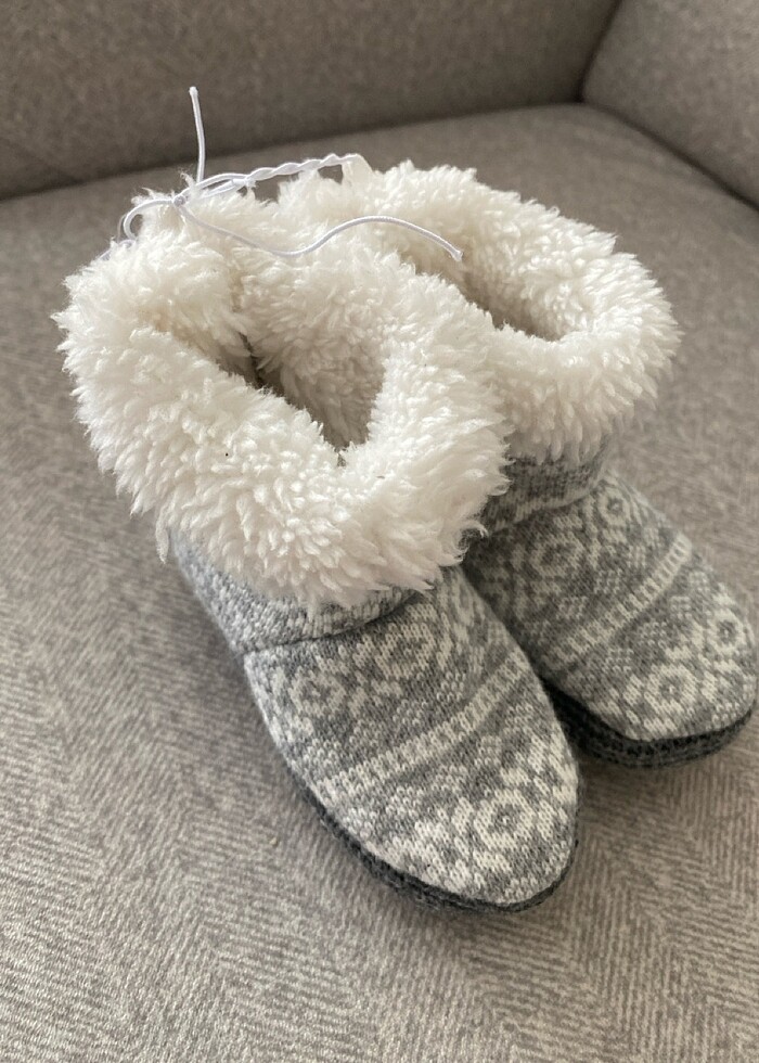Ürün Almanya’dan alındı. Küçük olduğu için hiç kullanamadık.Etiketi üstünde duruyor zaten. İçi yumuşacık,kaydırmaz taban.