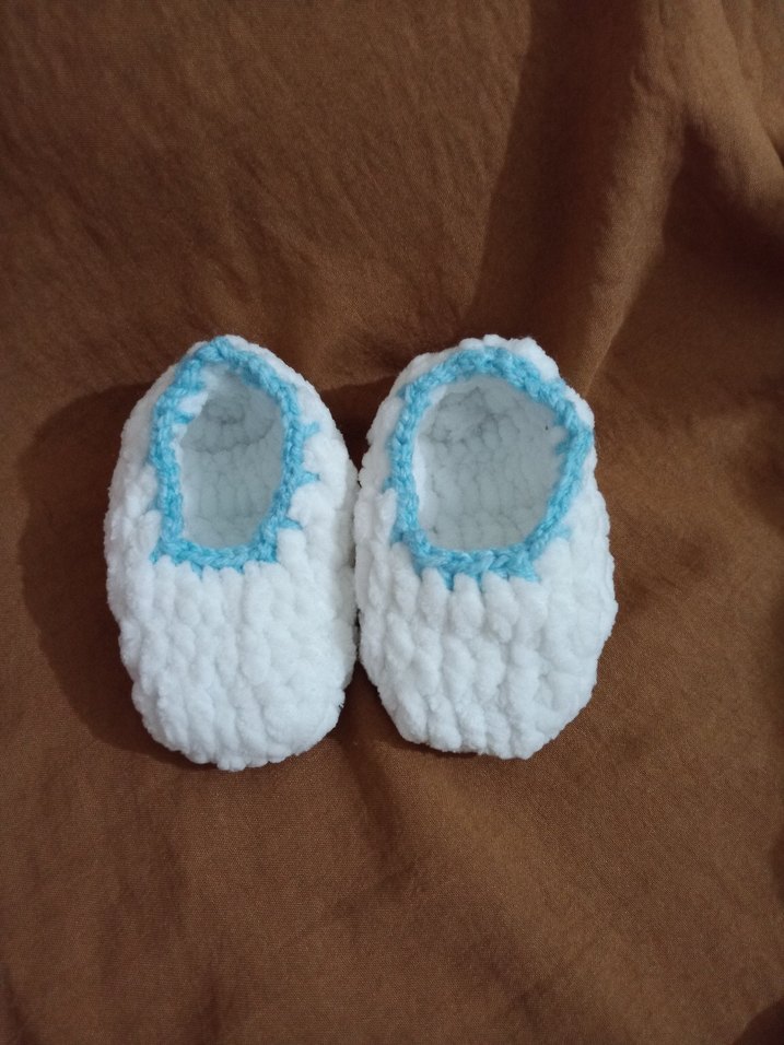 yeni doğan bebek patigi kadife ipten yapilmistr