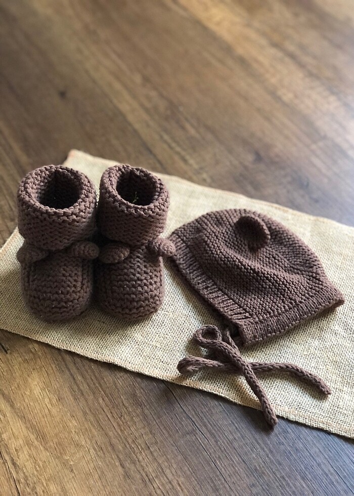 Bebek patiği örgü bere şapka (ayıcık kulaklı)