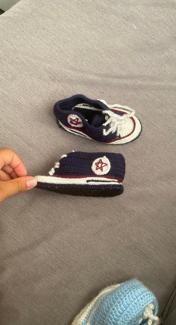 El örgüsü bebek patik sadece bir kez fotoğraf çekimi için giyildi yeniden farksız 16 cm