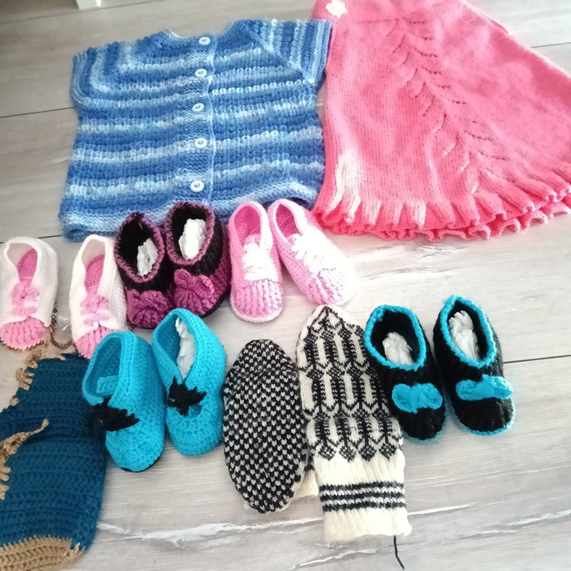 Yumuşak örgüden yapılmış, sade ve temel tasarımlı kız çocuklar için renkli örgü ev botları.