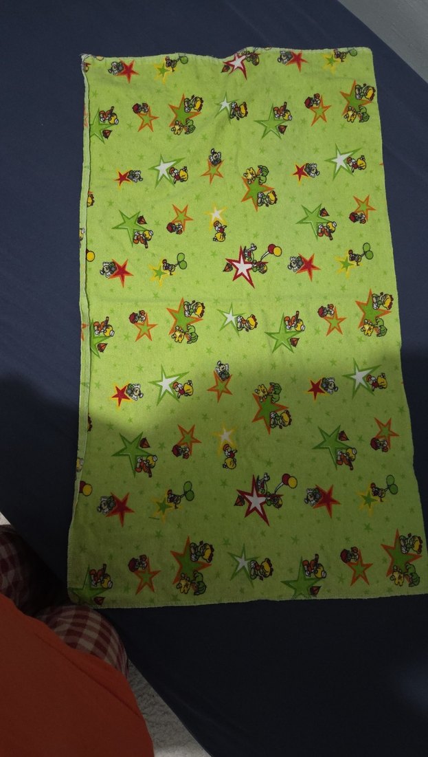 çift katlıdır, 85 cm. 46 cm Renkli baskılı desene sahip, yumuşak sentetik kumaştan yapılmış çocuk battaniyesi.