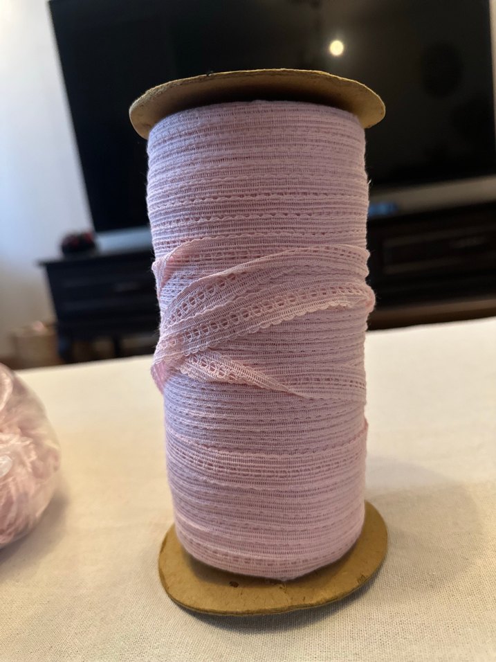 Bebek pembesi pamuk şerit. 10 metre olarak almıştım hatırladığım o. 2 metre kadar kullanmışımdır.