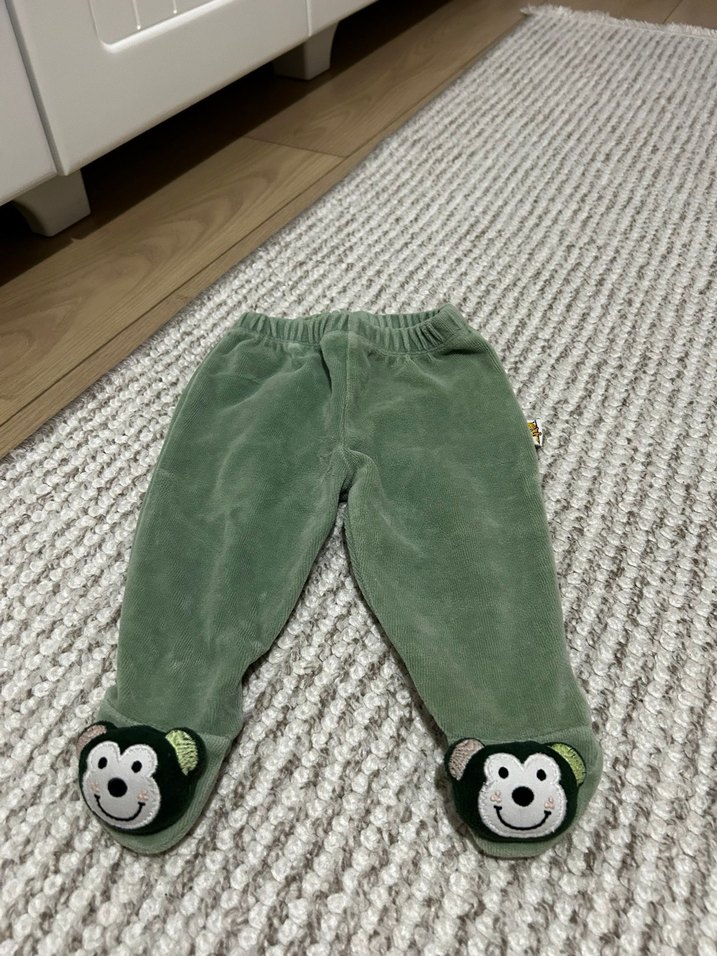 Bebek pijama altı , yumuşak ve sıcak kumaştan, yeşil tonlarda, bol kesimdir. Ayaklarda nakışlı maymun figürleri ve konforlu lastikli bel bulunur.