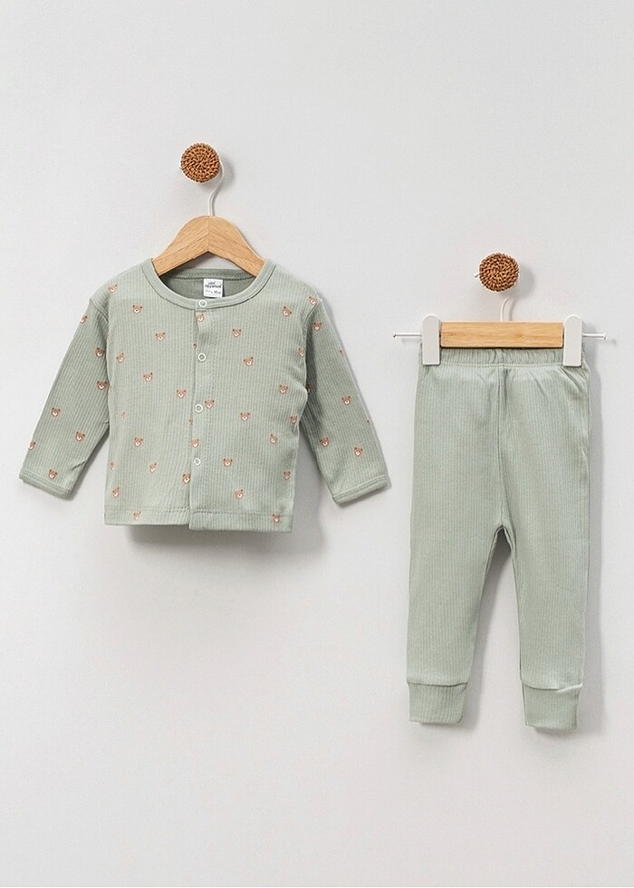 Bebek pijama takımı ayıcık desenli yeşil