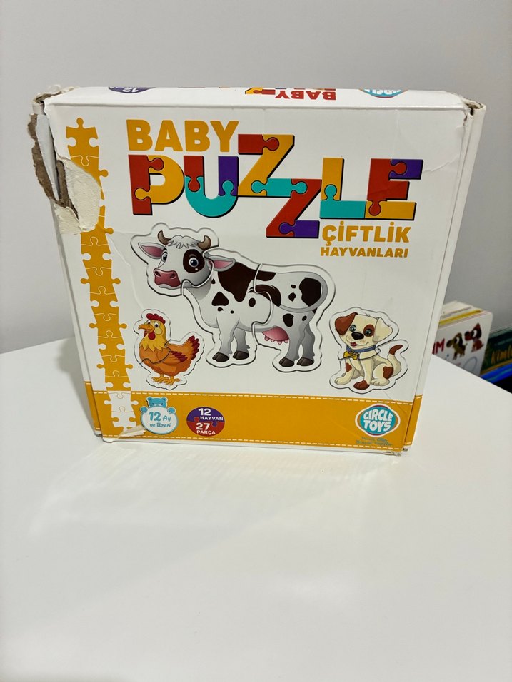 Bebekler için çiftlik hayvanlarını içeren renkli puzzle. Kolay tutulan parçalar ve canlı renklerle hazırlanmıştır.