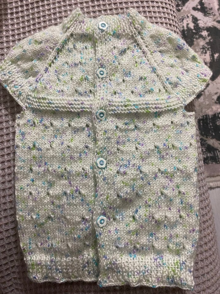 çok renkli, düğmeli,yumuşak örgü kumaştan yapılmış yelek.