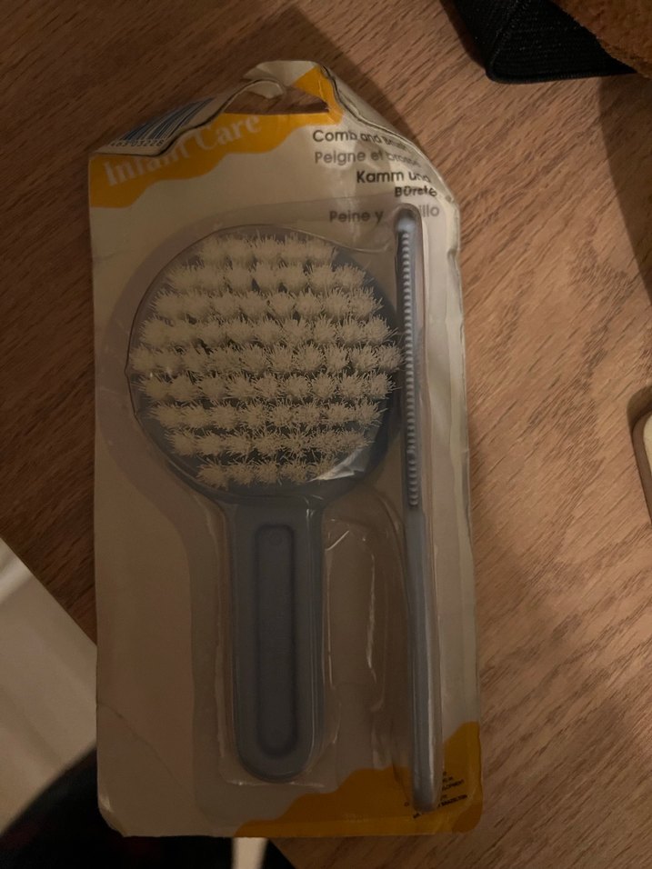 Yumuşak kıllı fırça ve ince dişli taraktan oluşan bebek saç bakım seti, nazikçe saç bakımına uygundur.
