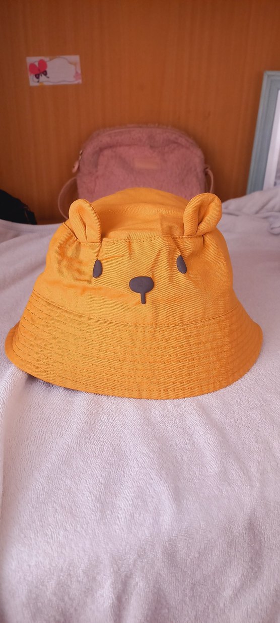 Renkli sarı ve mavi renkte iki adet cırtcırtlı ipli ayıcık kulak detaylı, sokak stili ve plaj için uygun trend şapka.