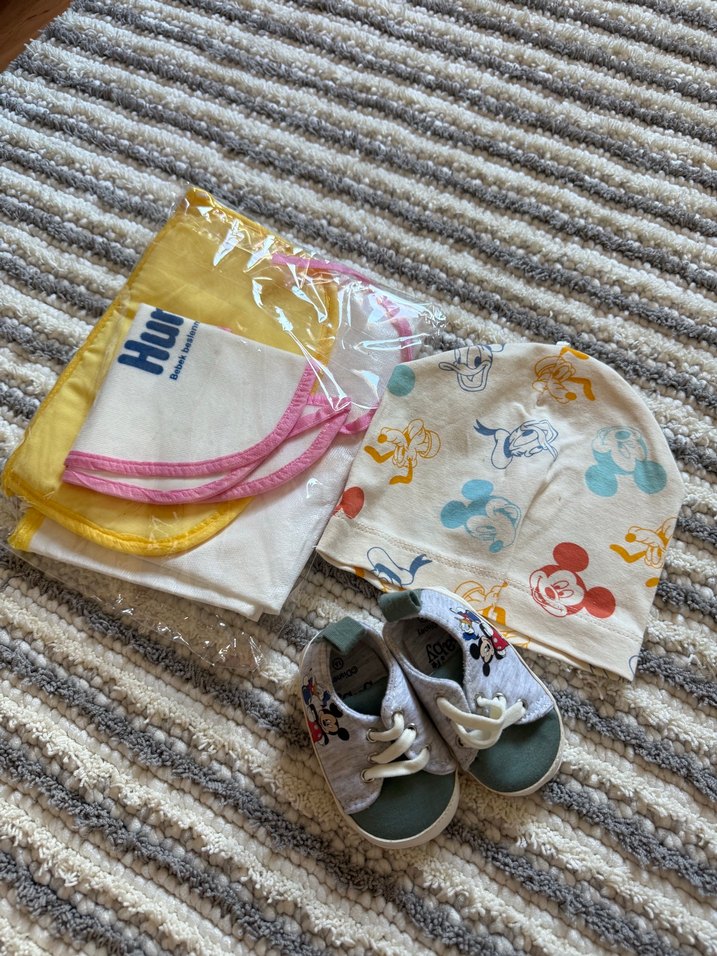 Yeni doğan seti ayakabı 16 numara lcw marka şapka lcw marka alt temizleme ve önlükten oluşıyor sıfır