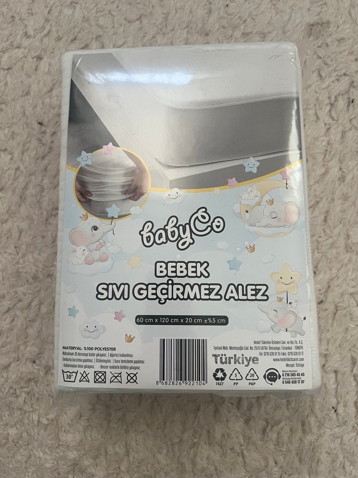BabyCo bebekler için 60x120x20 cm ölçülerinde sıvı geçirmez alez, sıvı geçirmez plastik katmanlı ve baskılı desenli