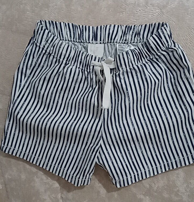 %100 pamuklu, lacivert- beyaz ince çizgili, az kullanılmış, lekesiz. 1-1,5 yaş.