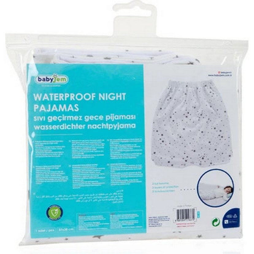 Gri beyaz desenli, yumuşak ve sıcak kumaştan üretilmiş bebek su geçirmez gece pijaması. Uyku sırasında koruma sağlar.