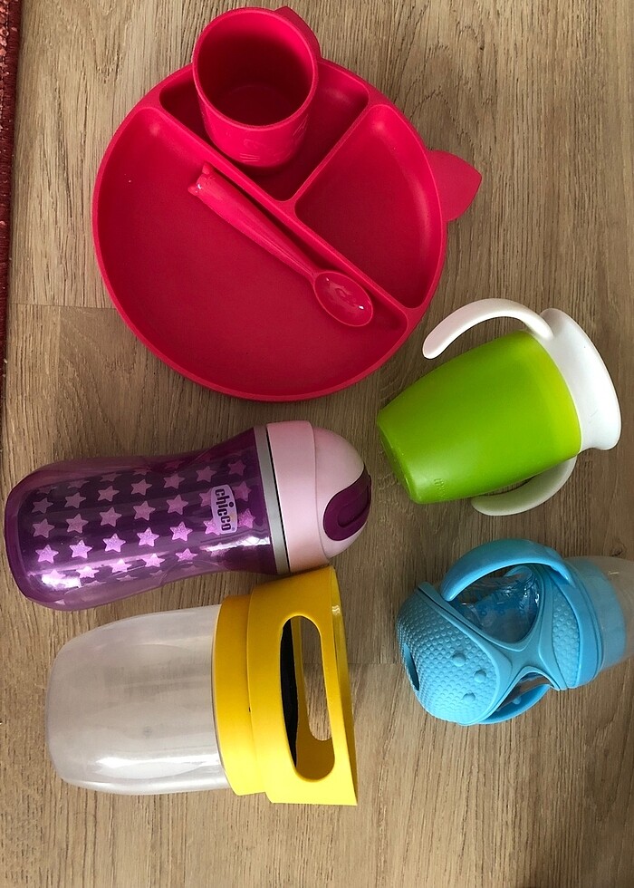 Bebek tabak , kaşık, bardak silikon / chico marka prpitlı bardak