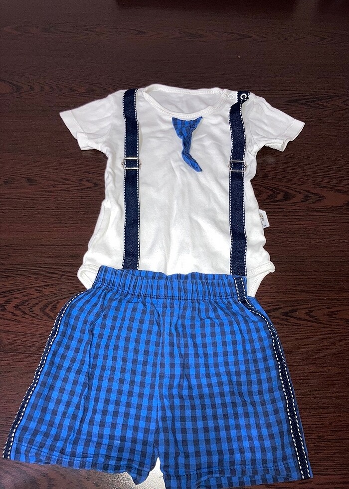 Yaka detaylı Üstü zıbın alt kısmı şort.yazlık tertemiz takım.6-9 ay için uygun.çok az kullanıldı