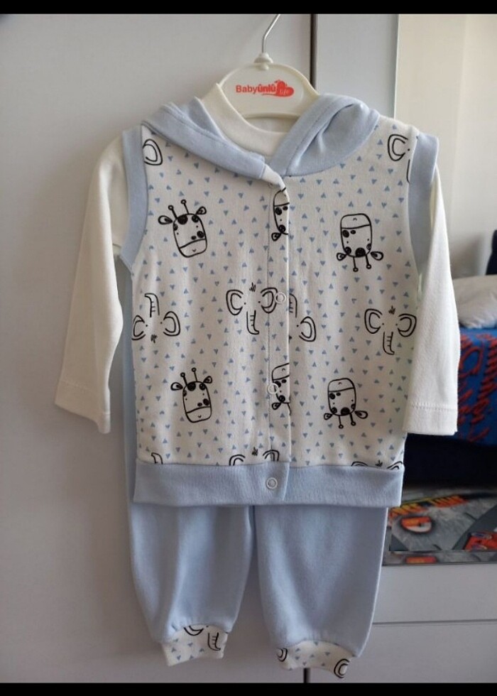Üçlü takım. Yenidir. Hiç kullanılmadı. 9.12 ay bedenlidir.