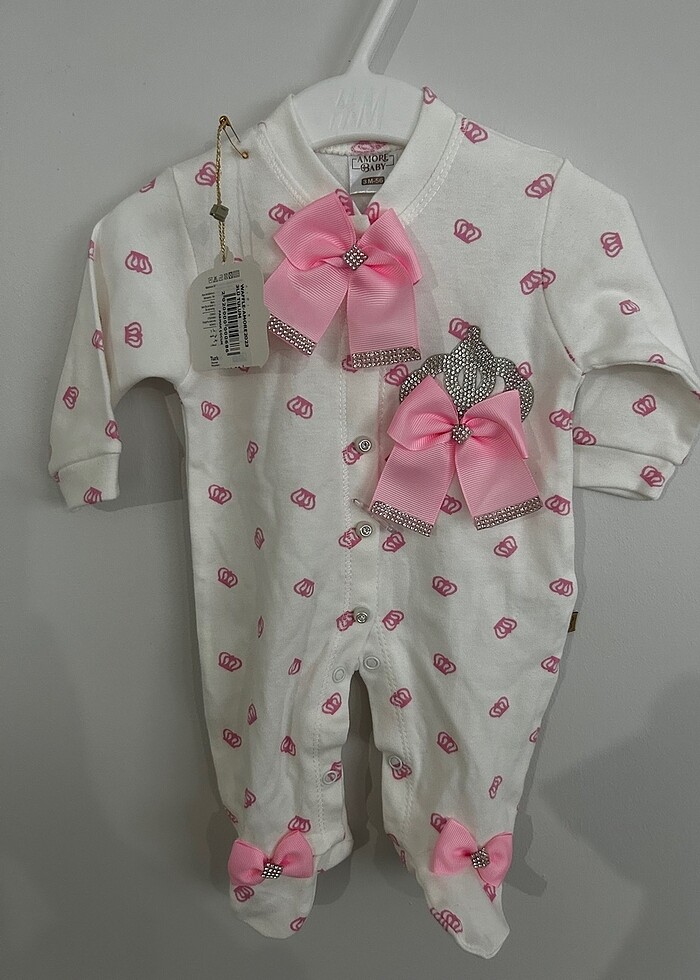 Etiket bilgileri: Amore Baby (Trendyol Özgün Baby satıcıdan alındı) yarı fiyatına satıyorum. Set içeriği: tulum, şapka, eldiven Renk: beyaz-pembe desenli Boy: 56 cm, 3ay Hiç kullanılmadı, yıkanmadı. Üstünde etiket mevcut.