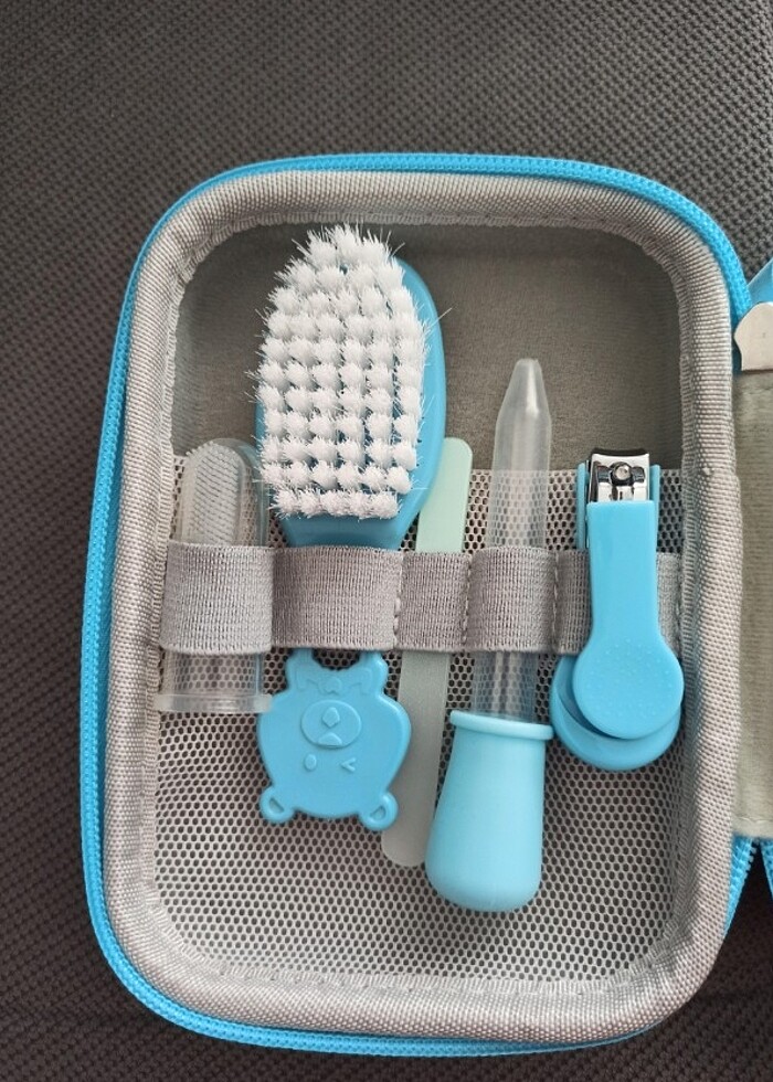 Amerika'dan arkadaşım hediye getirmişti kullanamadan kayboldu ev taşırken eşyaların arasından çıktı. Yenidoğan dönemi için oldukça kullanışlı bir bebeğin ihtiyacı olan her şey var içinde ağız ve buruna kulağa bakmak için ışığı bile mevcut fotoğraflarda gösterdim. Sadece ilaç damlalığını birkaç kez kullandım o kadar sert kapaklı çantası sayesinde hem düzenli duruyor hem de seyahat için oldukça kullanışlı
