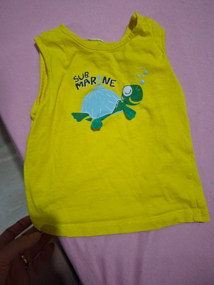 Sarı tsört uzunluğu 27 koltuk arası 30 cmdir. Sarı kolsuz uzunluğu 32 koltuk arası 28 cmdir.ikisids temiz birer kez anca giyildi 18 24 ay uyumludur ikili fiyattır