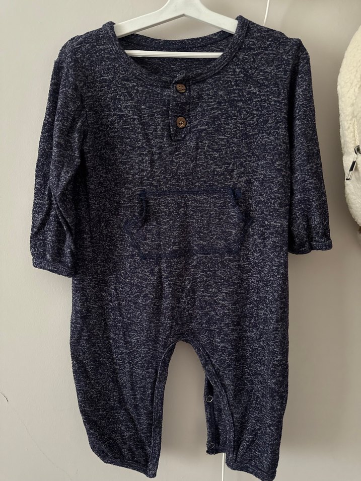 Lacivert, uzun kollu yumuşacık bebek tulumu. Alttan çıtçıtlı Cigit tulum, 9-12 ay
