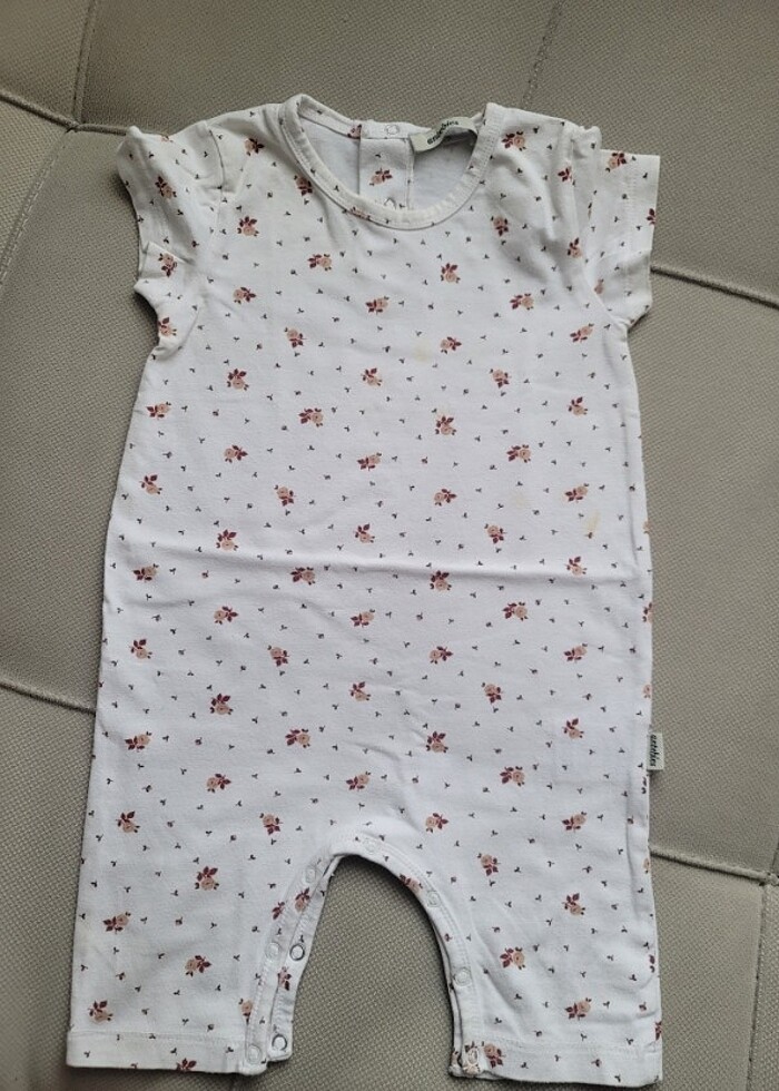 Yumusacik penye organik pamuk kumas ,cok az etiket yaninda lekeler var ama ciceklerle ayni renk belli olmuyor ,1 yasa kadar olur #bebektulum #organikpamuk #antebies