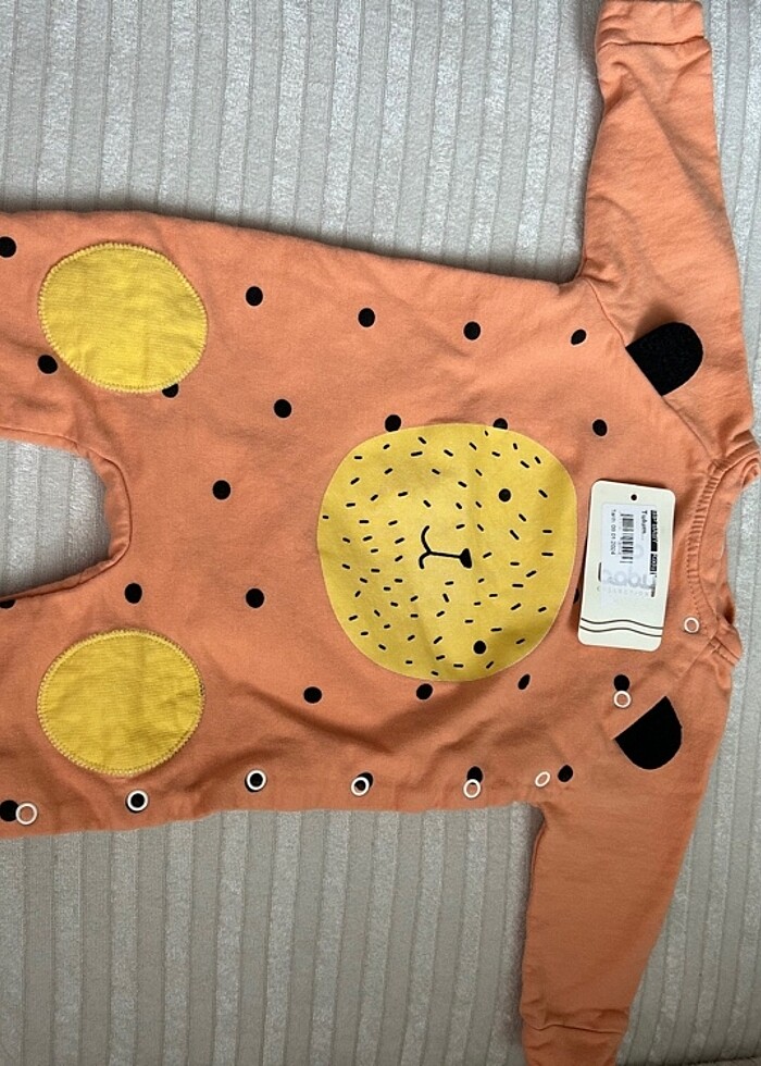 Çok tatlı bir tulum. Bebeğim çok hızlı büyüdü giydiremedim. Diğer renklerinde var toplu alırsanız mantıklı olmak şartıyla indirim yaparım. 3 6 ay yazıyor ama bebeğim 3 aylıkken bile giyemedi biraz dar
