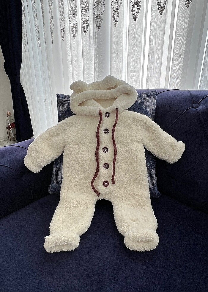 Kuzu ipten örülen bebek tulum beyaz renk