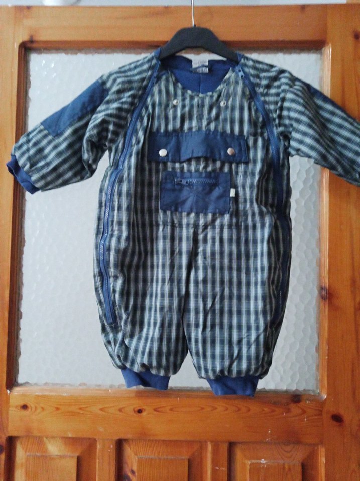 Düğmeli, gri renkte, yumuşak ve sıcak kumaştan yapılmış normcore tarzında bebek tulumu. Desensiz ve rahat kullanımlık. ❄️