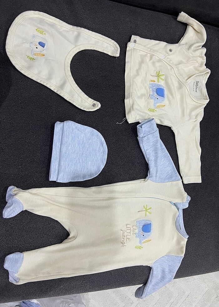 Ürün yenidoğan için alınmıştı. 3-4 kere giyildi. Bebetof diye bir markanın ürünü. Hastane çıkışı diye geçiyor.