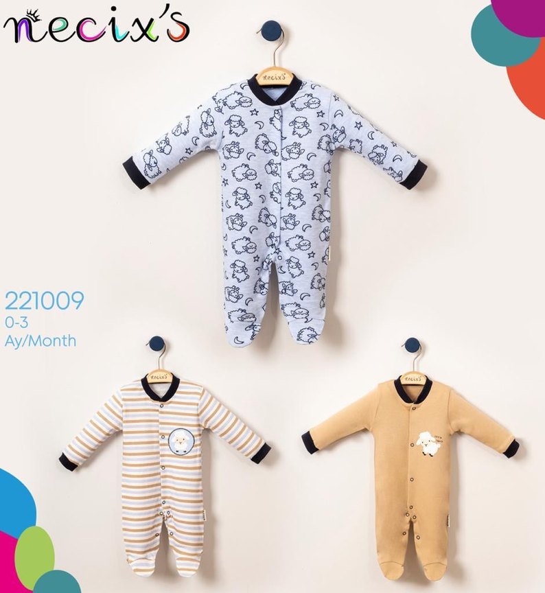 Bebek Tulum, Uzun Kollu, Düğmeli 3 lü