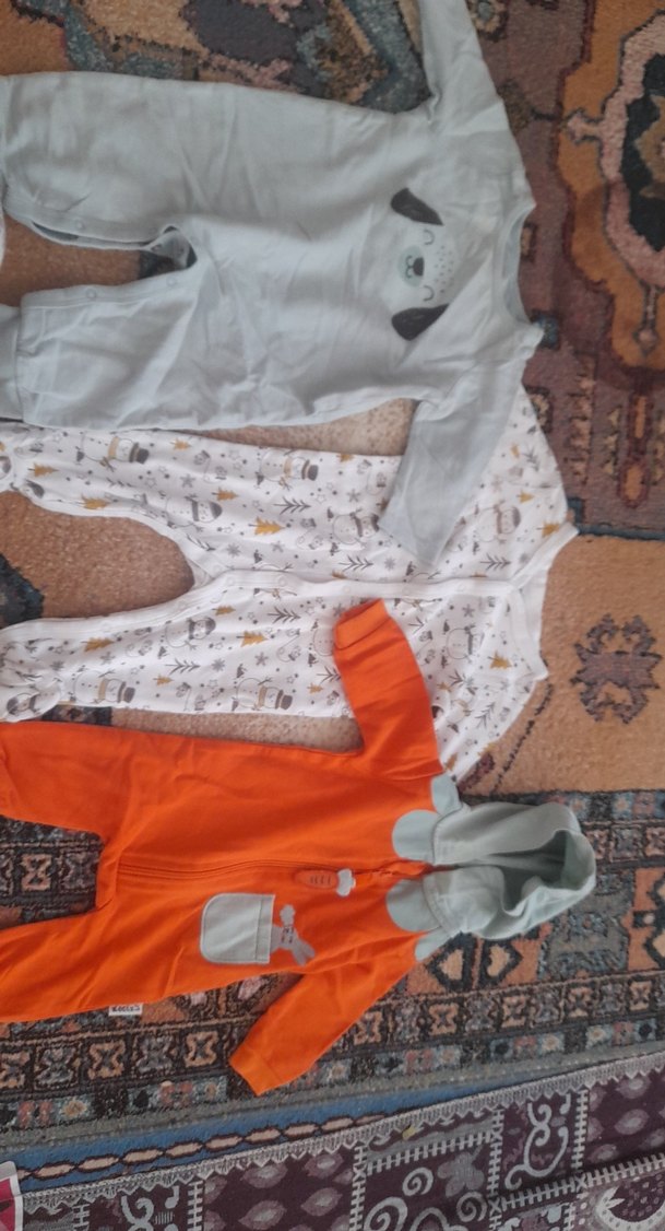 Erkek bebekler için kapüşonlu, uzun kollu ve fermuarlı pijama takımı. Gri, desenli beyaz ve turuncu renk seçenekleri bulunur. Rahat uyku için uygundur. adet fiyatı 75 tl.