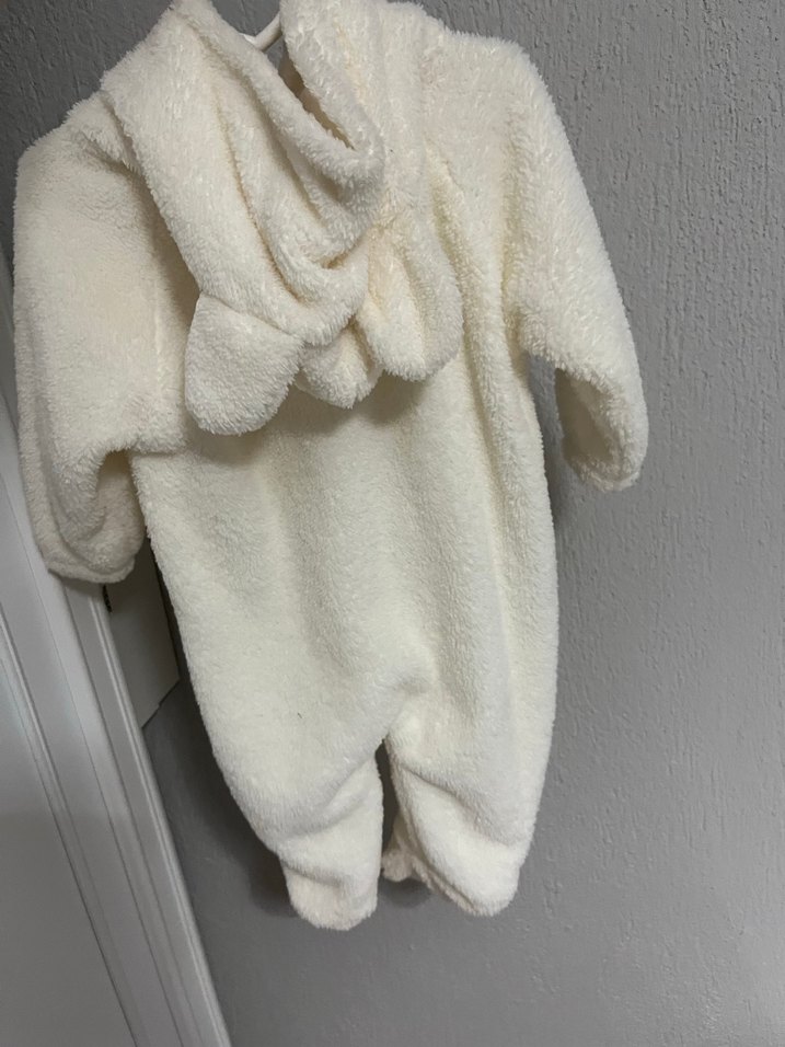 Beyaz renkli, kapüşonlu ve kürk detaylı yumuşak dokulu bebek tulumu, sıcak ve rahat bir kullanım sunar. Desensiz ve sade tasarıma sahiptir. ❄️