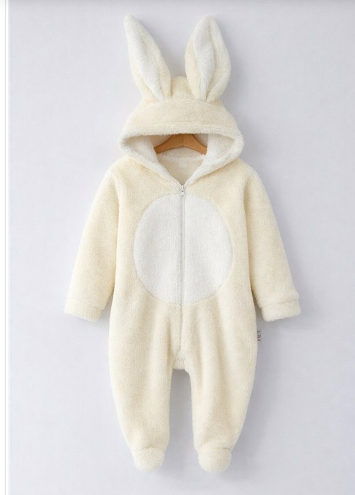 Welsoft Bebek Tulum Tavşan Kulaklı Krem Tavşan Kulaklı, Kapüşonlu Bebek Tulum 12 aya kadar mevcut ay belirtiniz