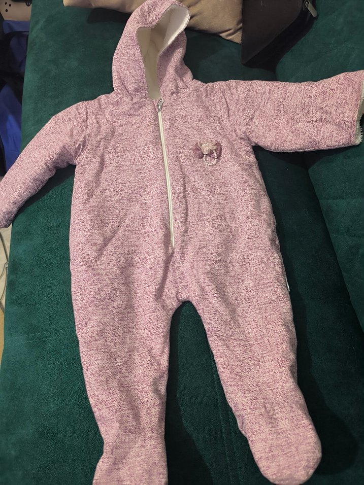 Kapüşonlu ve fermuarlı, pastel renkte, notched lapel yakalı, yumuşak kumaştan bebek tulumu. kışlık içi yumuşacık