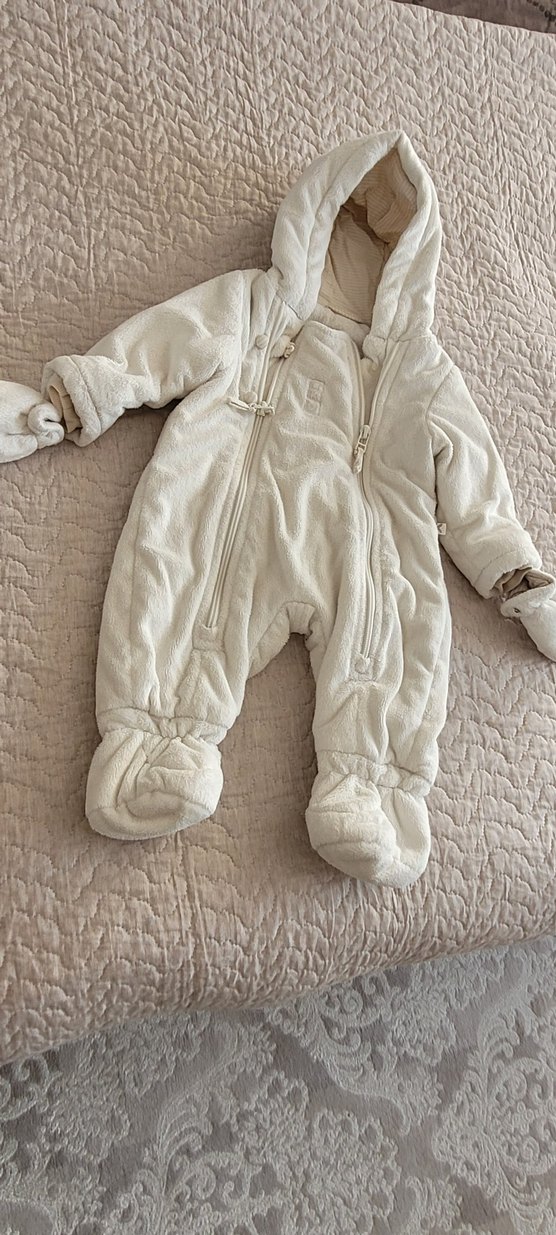 Beyaz renkli, kürk detaylı ve kesik yaka tasarımlı, yumuşak ve sıcak kumaştan bebek kız tulumu. ❄️3-6 ay beden uzerindeki gibi