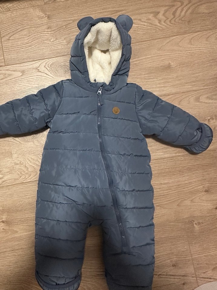 Gri renkli bebek tulumu, kapüşonunda kürklü detaylar bulunur. Normcore tarzda ve önden fermuarlıdır. El ve ayak kapatmalı detaylı Yenidoğa’dan dört aya kadar kullanım.