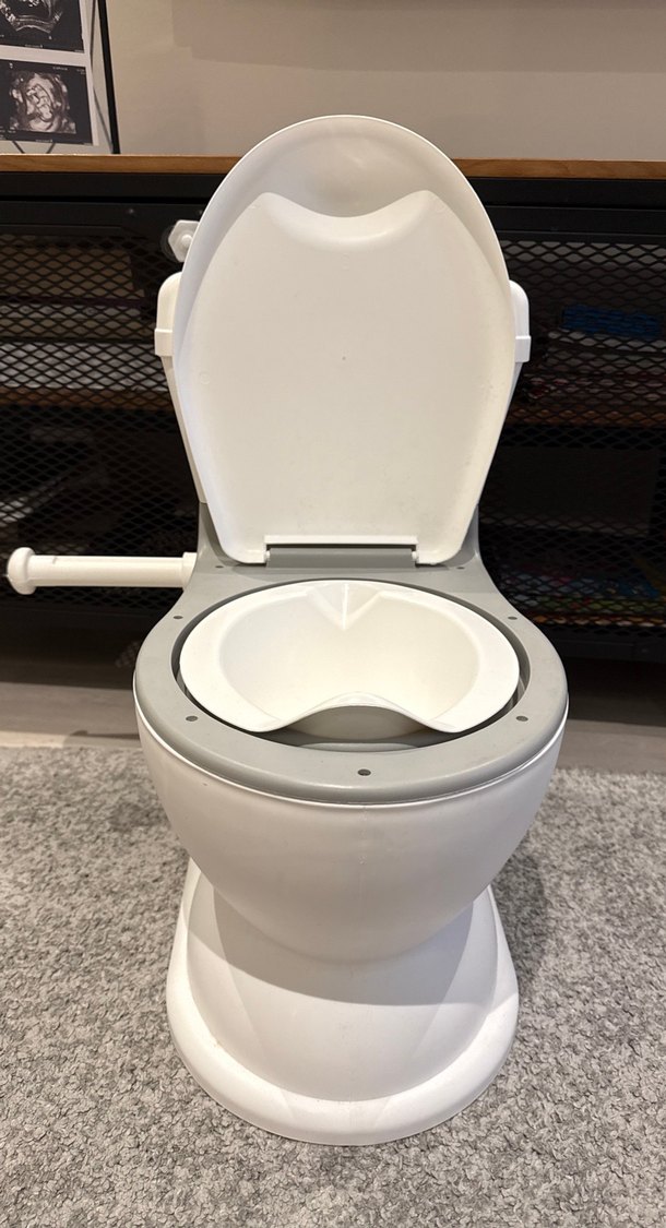Bebekler için uygun, kapaklı ve oturma yüzeyli tuvalet eğitim seti. Tuvalet Markası dolu. Kızım sayılı kullandı. Genellikle altına işemeyi tercih etti. 3. Görseldeki parçasını biz klozete kullandık hala kullanıyoruz o nedenle onu koymadık. Ebebekten uygun fiyata temin edebilirsiniz. O olmasa da kullanılabilir. Engel değil