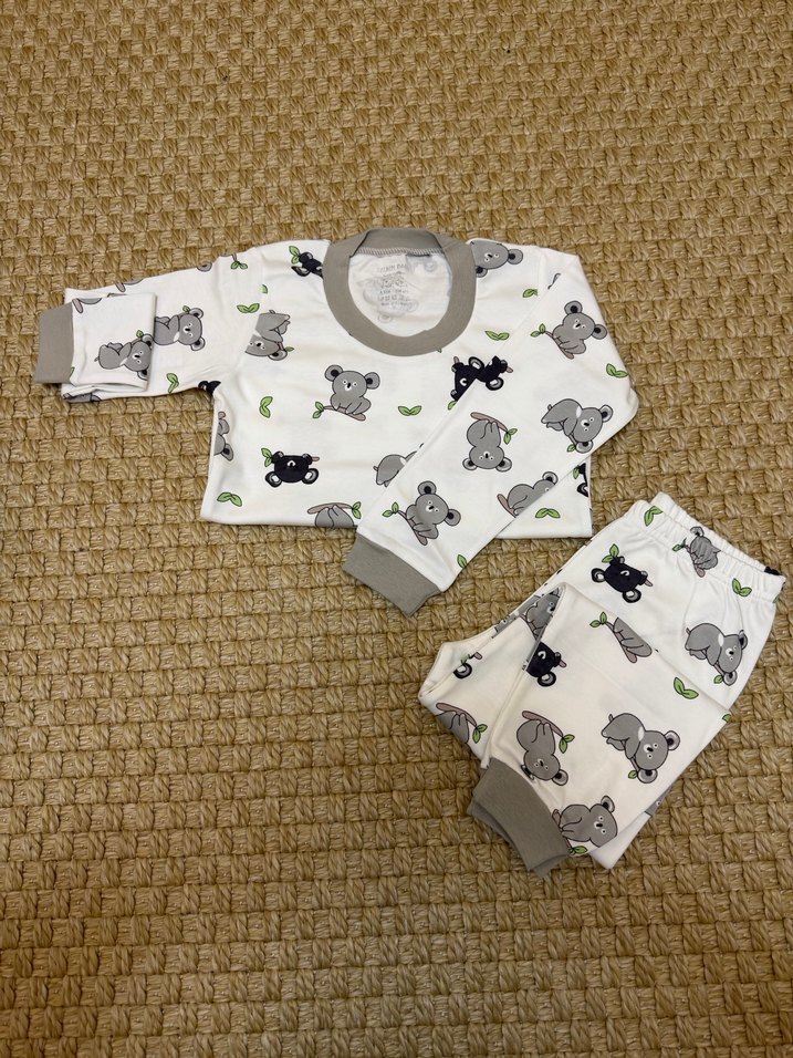 Bebek Unisex Gri Pamuklu Uzun Kollu Takım pijama