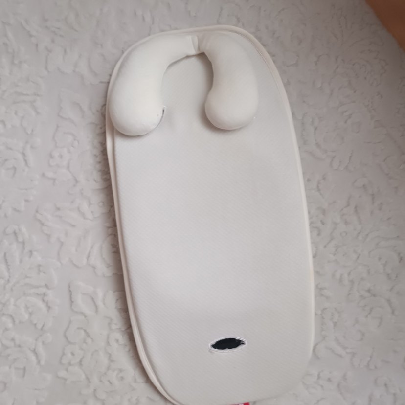 Yumuşak kumaştan yapılmış, küçük baş destekli beyaz bebek uyku destek minderi. Rahatlık için delik içerir. puset için bel destekli yatak , yıkanabilir örtüsü ile