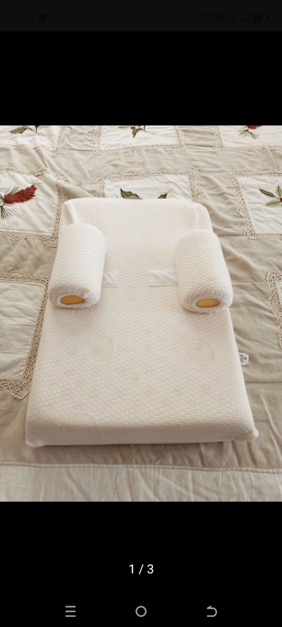 Yumuşak sentetik kumaştan yapılmış beyaz bebek uyku destek minderi, uyku sırasında konfor ve stabilite sağlar. ️